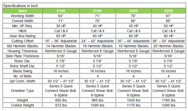 The “D” series flail mulchers are super heavy duty mowers designed for large areas, with heavy vegetation and/or brush. Areas like roadsides, orchards, fields, woods, roads and trails. Perfect for clearing and maintaining the more rugged landscape areas that include heavy grasses, debris, sticks, vines, branches and other wooded materials.