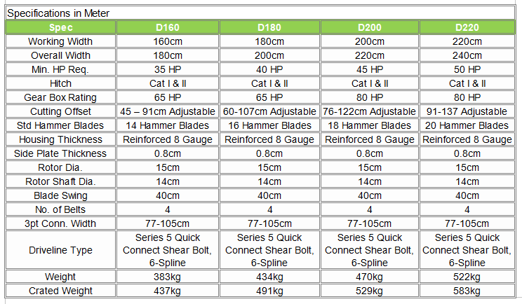 “D” flail mulchers are fitted with a strong steel 80 HP gearbox with internal over-running clutch to prevent damage to your tractor or the mower.