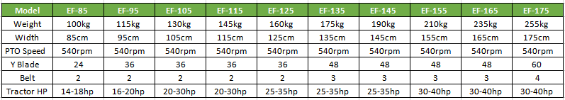 The EF Series (Light Duty)Flail Mower is an option if you are looking for a better finished cut than with the brush mower. The EF Series is a Weed and Grass Field Mower. Provides a smooth and better finish than a brush mower but not quite the finish of a rotary mower. This model is great for small acreage of 10 or less. Flail Mowers are useful for jobs where you are cutting grass on uneven groun,d high grass, weeds, brush, and small saplings. A flail mower doesn’t throw grass, instead it cuts finely and leaves the cuttings on the ground where it was cut making it an excellent choice for those places where you could cause damage by throwing debris. Highway mowing and park maintenance often use flail mowers because they are less likely to throw objects during cutting.