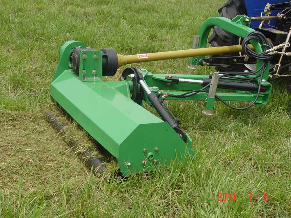 Verger flail mulchers are Super Heavy Duty Mowers designed with heavy cutting blades that can chop heavy brush including grasses, debris, sticks, vines, branches, and other wooded materials up to 2” in diameter. The mower head is attached to a hydraulic arm allowing you to swing the mulcher beyond your tractors wheels. The head may be pivoted hydraulically up to 90 degrees for hedge or hillside work or down 60 degrees for ditch or bank work. Connect it to our optional 4-way hydraulic control valve with a hydraulic float and the mulcher will follow the contours of the terrain.A flail mower doesn’t throw grass, instead it cuts finely and leaves the cuttings on the ground where it was cut making it an excellent choice for those places where you could cause damage by throwing debris. Highway mowing and park maintenance often use flail mowers because they are less likely to throw objects during cutting.