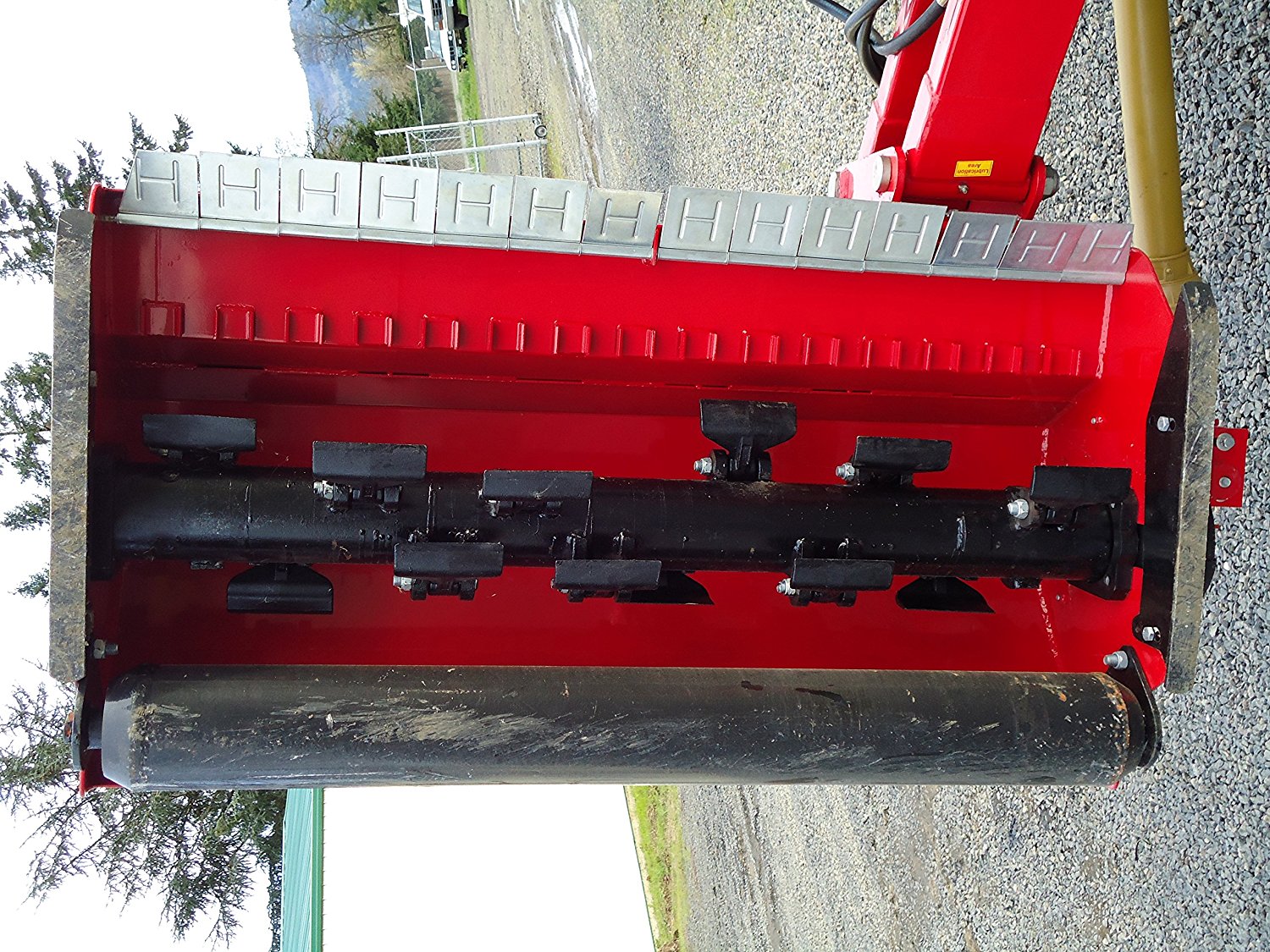 The mower head is attached to a hydraulic arm allowing you to swing the mulcher beyond your tractors wheels. The head may be pivoted hydraulically up to 90 degrees for hedge or hillside work or down 55 degrees for ditch or bank work. Connect it to our optional 4-way hydraulic control valve with a hydraulic float and the mulcher will follow the contours of the terrain.A flail mower doesn’t throw grass, instead it cuts finely and leaves the cuttings on the ground where it was cut making it an excellent choice for those places where you could cause damage by throwing debris. Highway mowing and park maintenance often use flail mowers because they are less likely to throw objects during cutting.