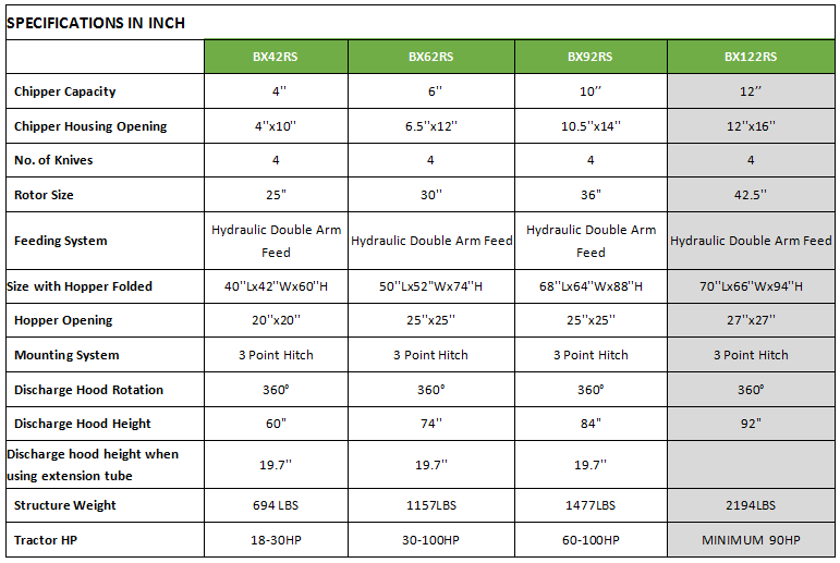 BX122RS is hydraulic wood chippeer with double arm.