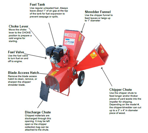 • 13” diameter 0.6” thick flywheel with 2 reversible 1/3” thick tool grade steel chipping knifes quickly eat branches