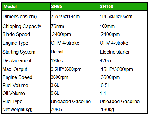 Farmer Helper SH65 & SH150 wood chipper shredder with 15hp petrol engine (electrical start with key) Fit for chipping all types of dry wood and green.