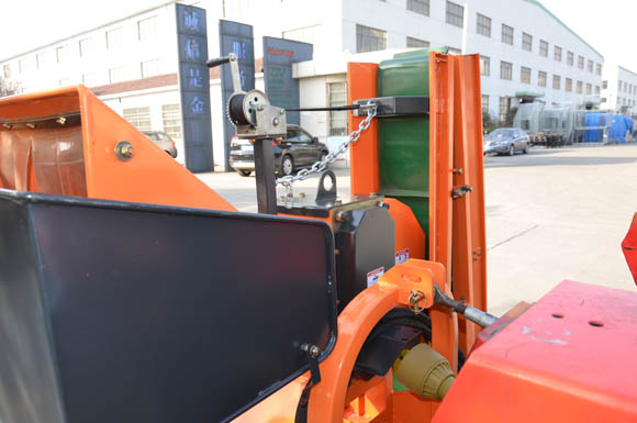 The cutting knives feed the branch itself when the machine is running. Logs then fall into a bag mounted on bags-filling device.