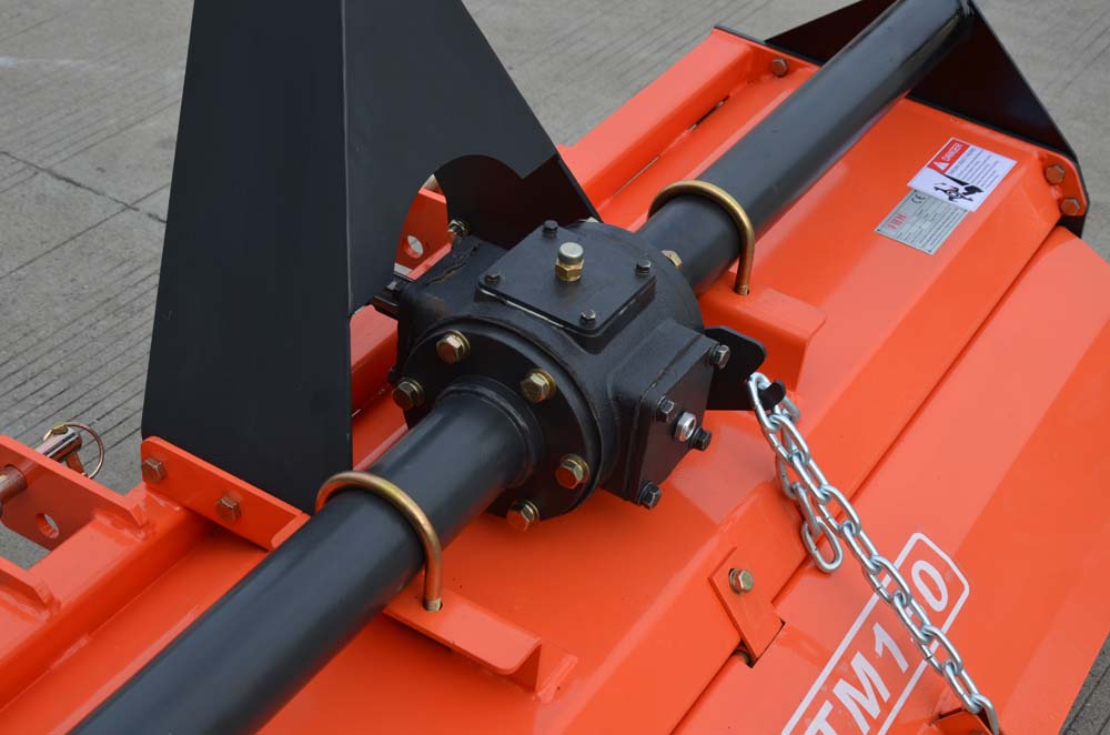 The heavy 45 horsepower rated steel gearbox has a built in over-running clutch so the tines may continue to spin when the PTO is stopped.