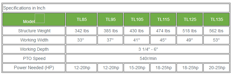 The TL Series Rotary Tiller is sized for the subcompact tractor and designed for seedbed preparation. Ideal for homeowner landscaping, small nurseries, gardens, small hobby farms, or medium-duty residential use.