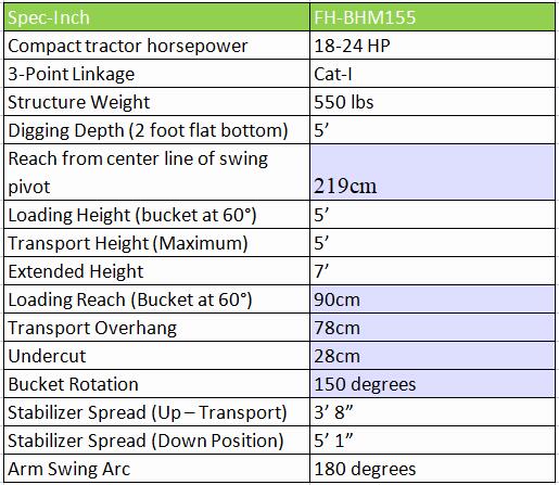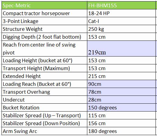 FHM backhoe attachments are a perfect combination of size and power. Light enough to move aroun,d yet strong enough to get the tough jobs done. Some backhoe attachments boost heavier weight, but weight is not power or durability. Additional unnecessary weight only adds stress to the frame of your tractor. BHM95 series backhoes attachments are manufactured using heavy Q-235 (American standard ASTM A-36) structural steel plate, the strongest plate steel available. The pieces are CNC laser cut so that they fit together perfectly, and are then precision welded. This combined with our superior design and high quality components provides the best backhoe value available.