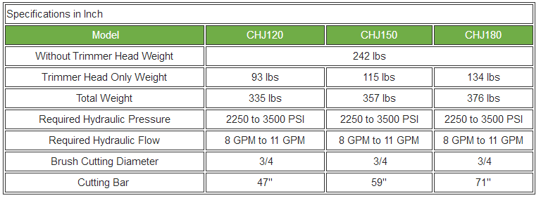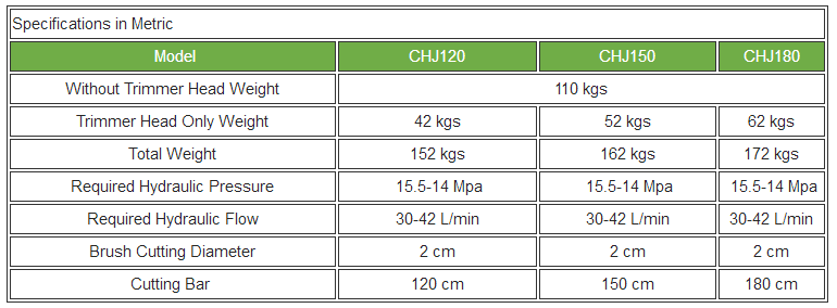 Three optional sizes of cutting bars for wide cutting swath.