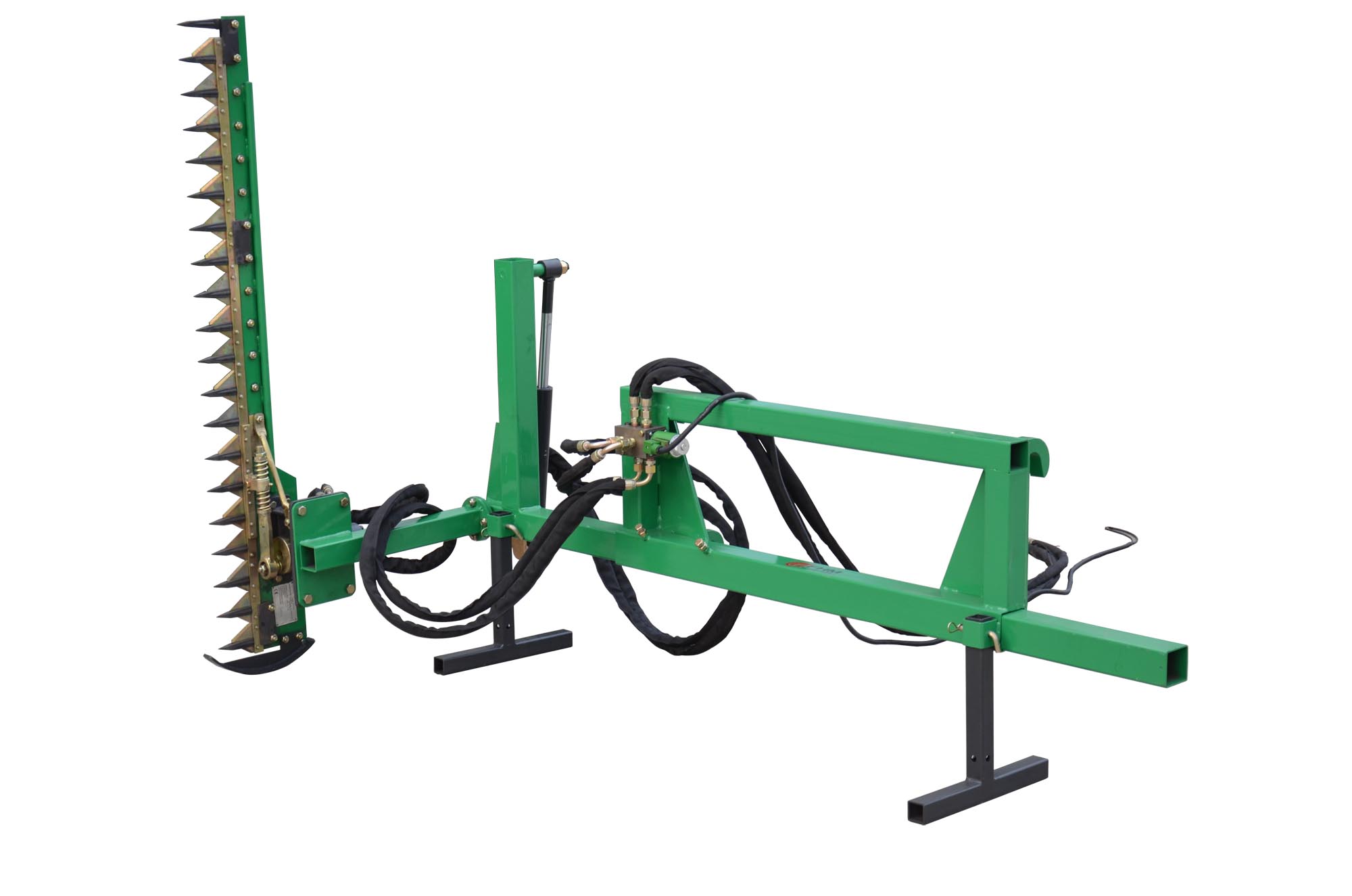 Finger bar sickle hedge cutter connects to your tractors/loaders remote hydraulics to make quick easy work of those problem areas that a normal mower cannot reach.