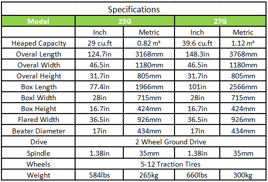 Web Chain: Spreaders come equipped with “T-Rod” web chain. These chains are made to last with 3 times the life of other chains.
